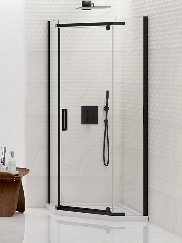 Wygodna kabina prysznicowa w klasycznym wydaniu o kształcie pięciokąta asymetrycznego. Optymalny wybór dla każdego, kto ceni skromną elegancję w wyposażeniu łazienki. Kabina uniwersalna lewa lub prawa.