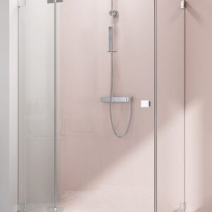 Kabina kwadratowa lub prostokątna, drzwi uchylne pojedyncze otwierane na zewnątrz, wspornik równoległy, bezpieczne hartowane szkło 6 mm z powłoką ochronną Active Shield