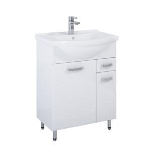 Komoda Amigo 50 cm na nóżkach, 1 szuflada, 2 drzwiczki, wyposażona w 1 półkę z regulowaną wysokością. Wykonana z materiałów wysokiej jakości, front i korpus lakierowany, uchwyty i nóżki metalowe w kolorze chrom. Zawiasy wypinane z funkcją cichego samodomyku.