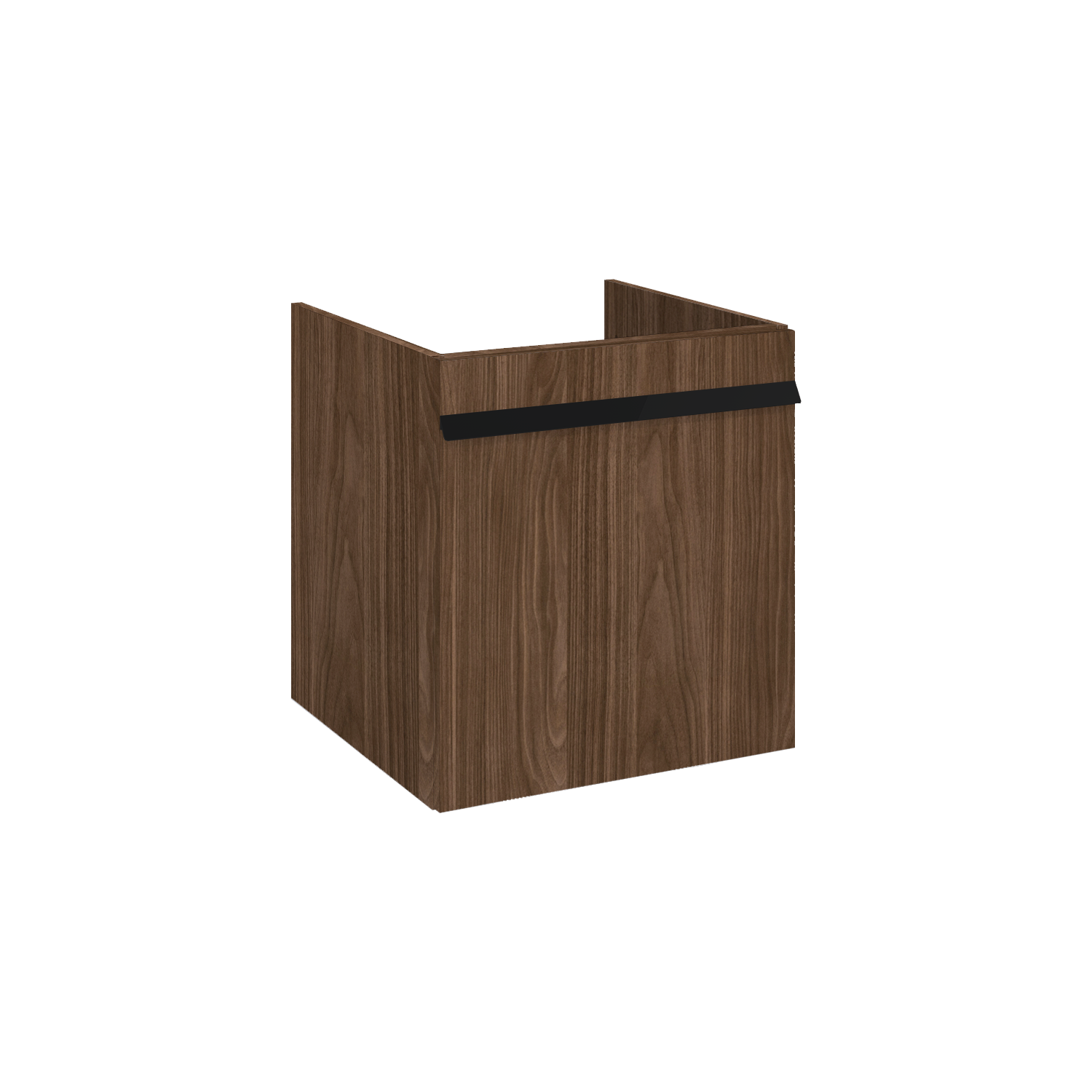 Komoda Moody 50 cm w kolorze orzech lincoln. Komoda posiada 1 szufladę z metalowymi bokami, funkcją cichego samodomyku oraz z pełnym wysuwem. Wykonana z materiałów wysokiej jakości, front i korpus z płyty laminowanej. Komoda jest sprzedawana bez uchwytów. Uchwyty do nabycia osobno – dostępne kolory: chrom, gold, black. Istnieje możliwość dokupienie trapezowych metalowych nóg w kolorze chrom, gold, black.
