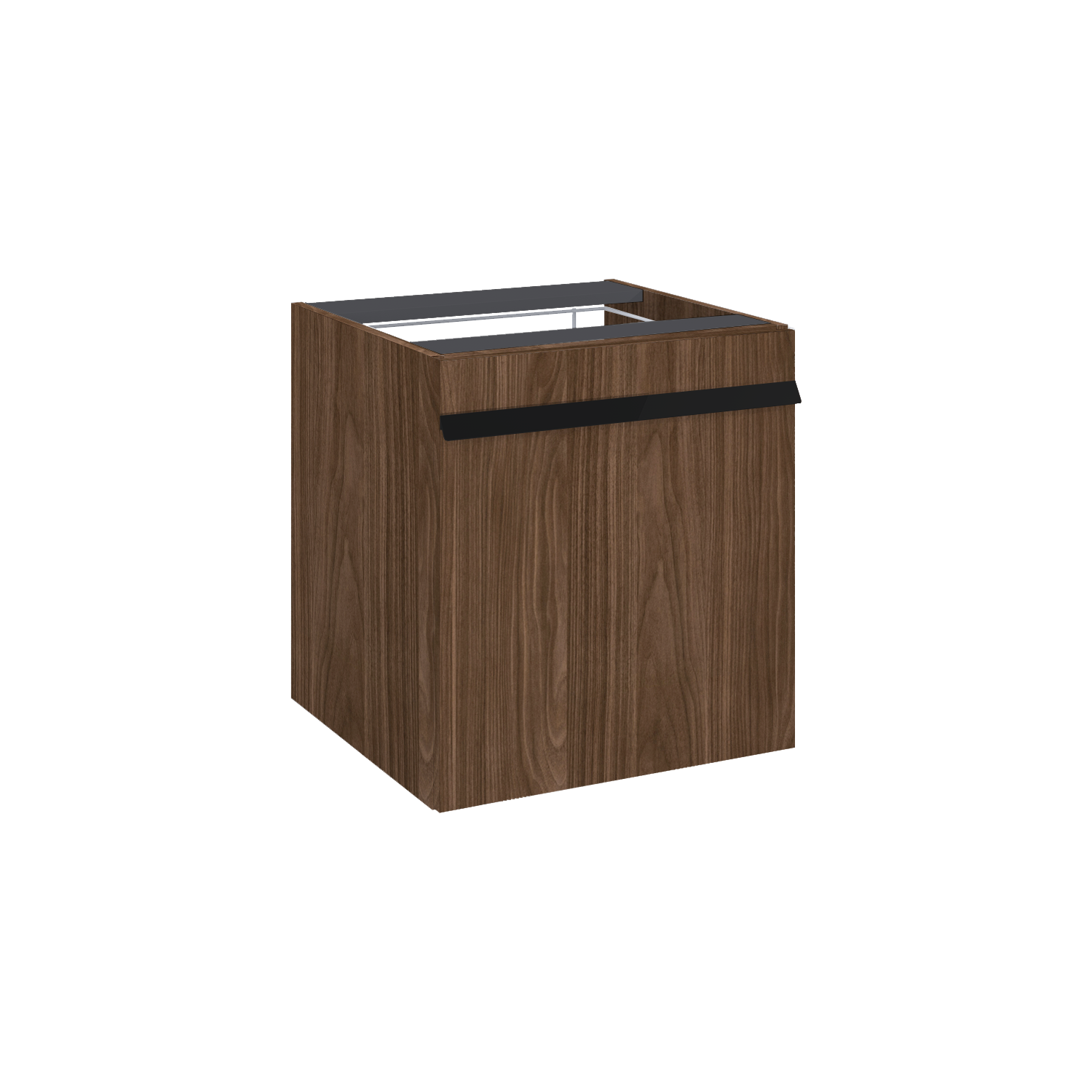 Komoda Moody 50 cm z koszem cargo w kolorze orzech lincoln. Wykonana z materiałów wysokiej jakości, front i korpus z płyty laminowanej. Uchwyty metalowe w kolorze chrom połysk. Kosz cargo w komodzie posiada wytrzymałe prowadnice o udźwigu do 20 kg, z pełnym wysuwem i systemem soft-close. Istnieje możliwość dokupienie trapezowych metalowych nóg w kolorze chrom.