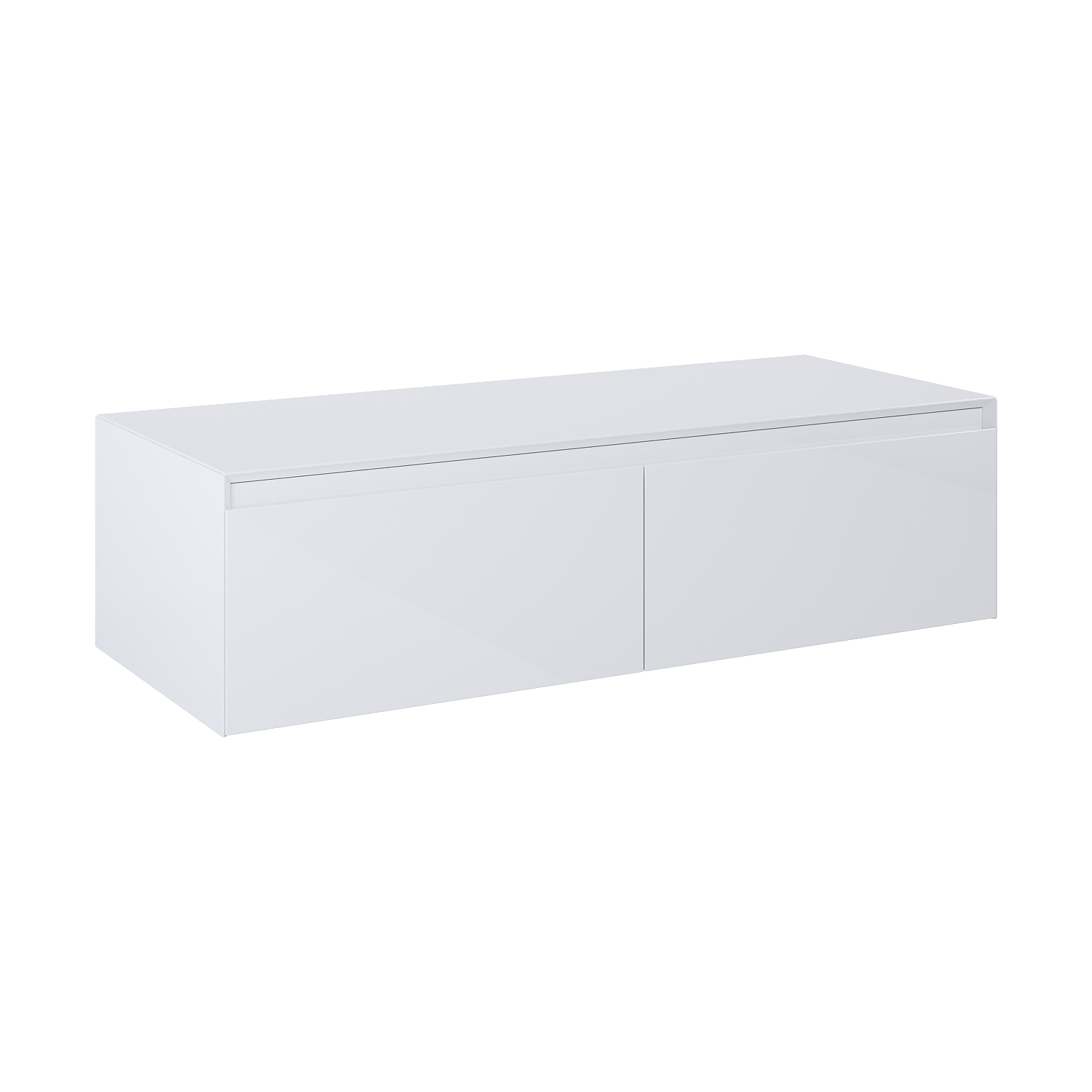 Komoda Split SLIM 120 cm z blatem, zaopatrzona w 2 szuflady z metalowymi bokami, pełnym wysuwem i systemem soft – close. Szafka wykonana z materiałów wysokiej jakości, front i korpus z płyty laminowanej, lakierowanej na wysoki połysk w kolorze white. Frezowane uchwyty wyprofilowane pod kątem 45°.