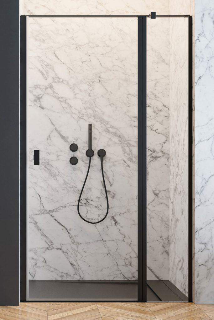 ZLICOWANIE Z TAFLĄ SZKŁA- Zawiasy zostały zlicowane z taflą szkła – jednolita powierzchnia ułatwia czyszczenie kabiny.