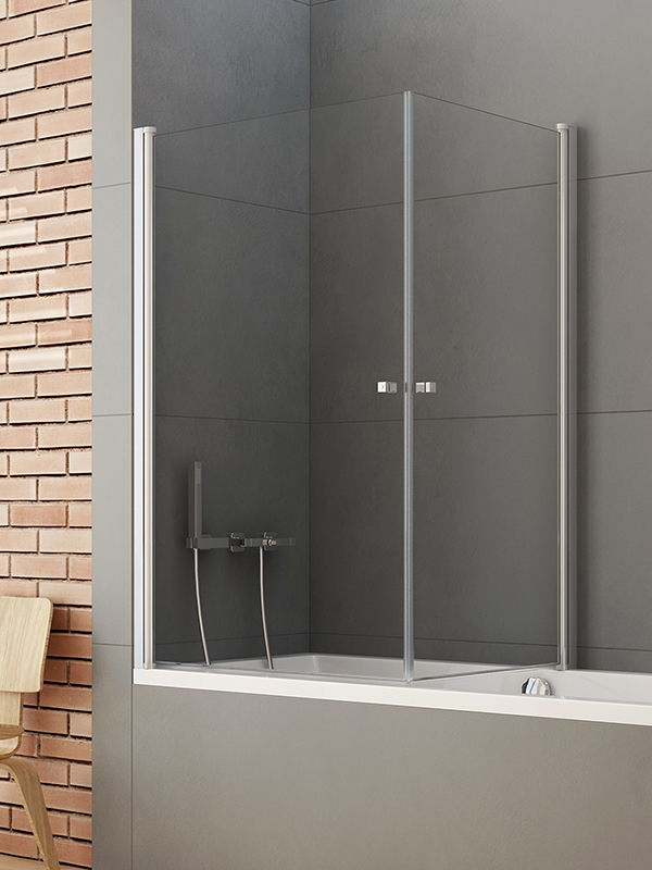 Parawan nawannowy do montażu na wannie. Dzięki zawiasowi uchylnemu na zewnątrz i do wewnątrz można złożyć go do ściany aby nie przeszkadzał podczas kąpieli w wannie. Parawan uniwersalny lewy lub prawy.
