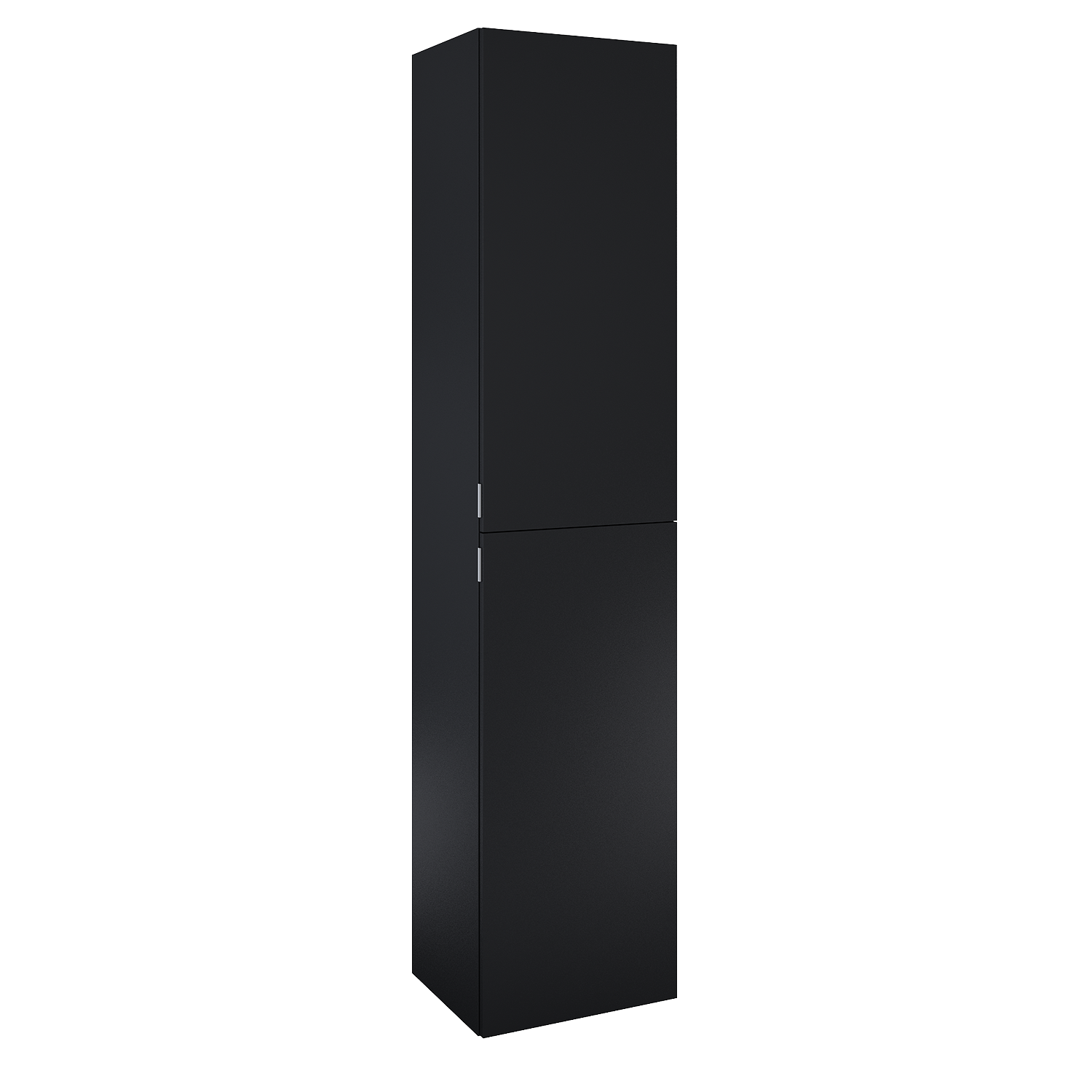 Słupek For All 40 cm, 2 drzwiczek. Słupek z subtelnym metalowym uchwytem w kolorze chrom, wyposażony w 4 półki z regulowaną wysokością. Wykonany z materiałów wysokiej jakości. Słupek w kolorze black matt z zawiasami z funkcją cichego samodomyku. Słupek może stanowić uzupełnienie wszystkich kolekcji mebli łazienkowych z naszej oferty.