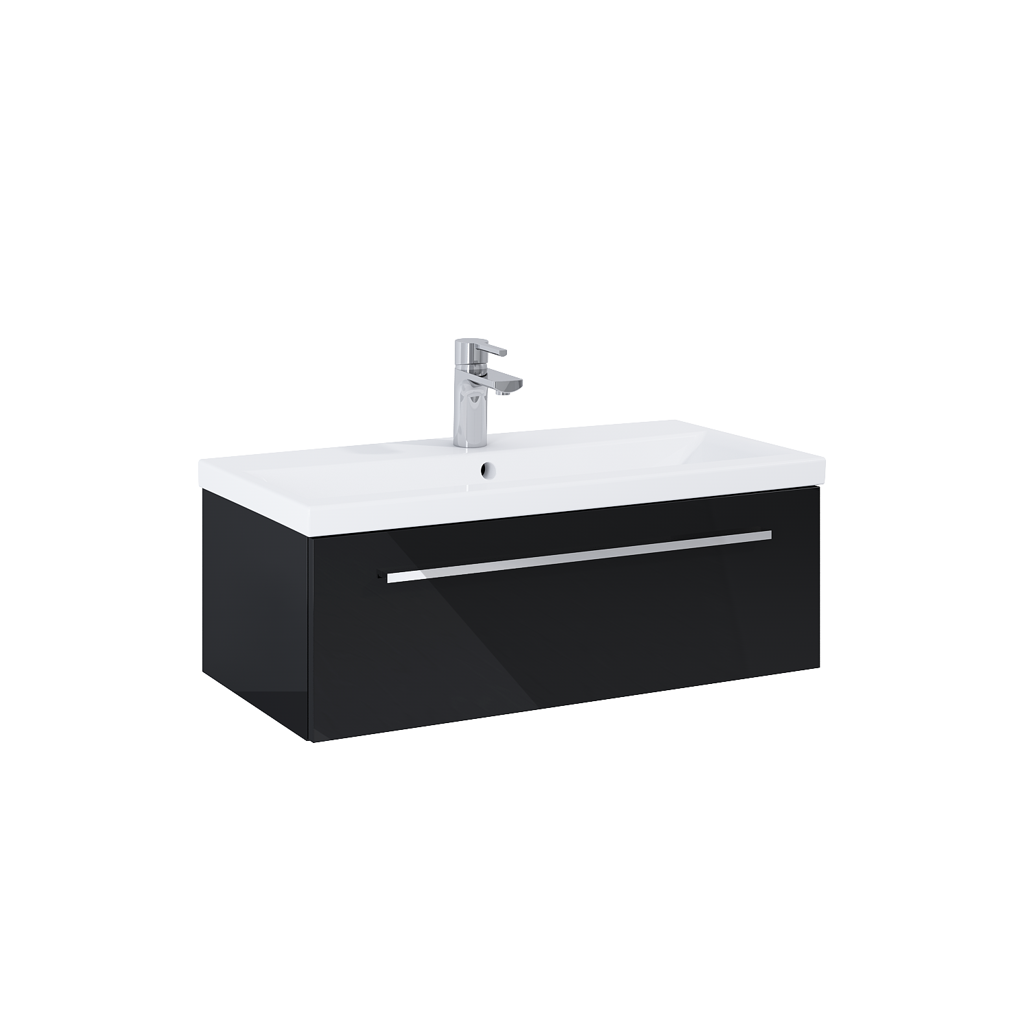 Szafka podumywalkowa Kwadro Plus 80 cm w kolorze black. To nowoczesna jednoszufladowa szafka z funkcją cichego samodomyku oraz z pełnym wysuwem. Wykonana jest z materiałów wysokiej jakości, odznacza się niebywałą solidnością. Front i korpus mebla składa się z płyty laminowanej, lakierowanej na wysoki połysk. Metalowe chromowane uchwyty są wygodne w użyciu. Szuflada wyposażona w praktyczny oragnizer. Istnieje możliwość dokupienia uchwytów w kolorze białym, czarnym i złotym.