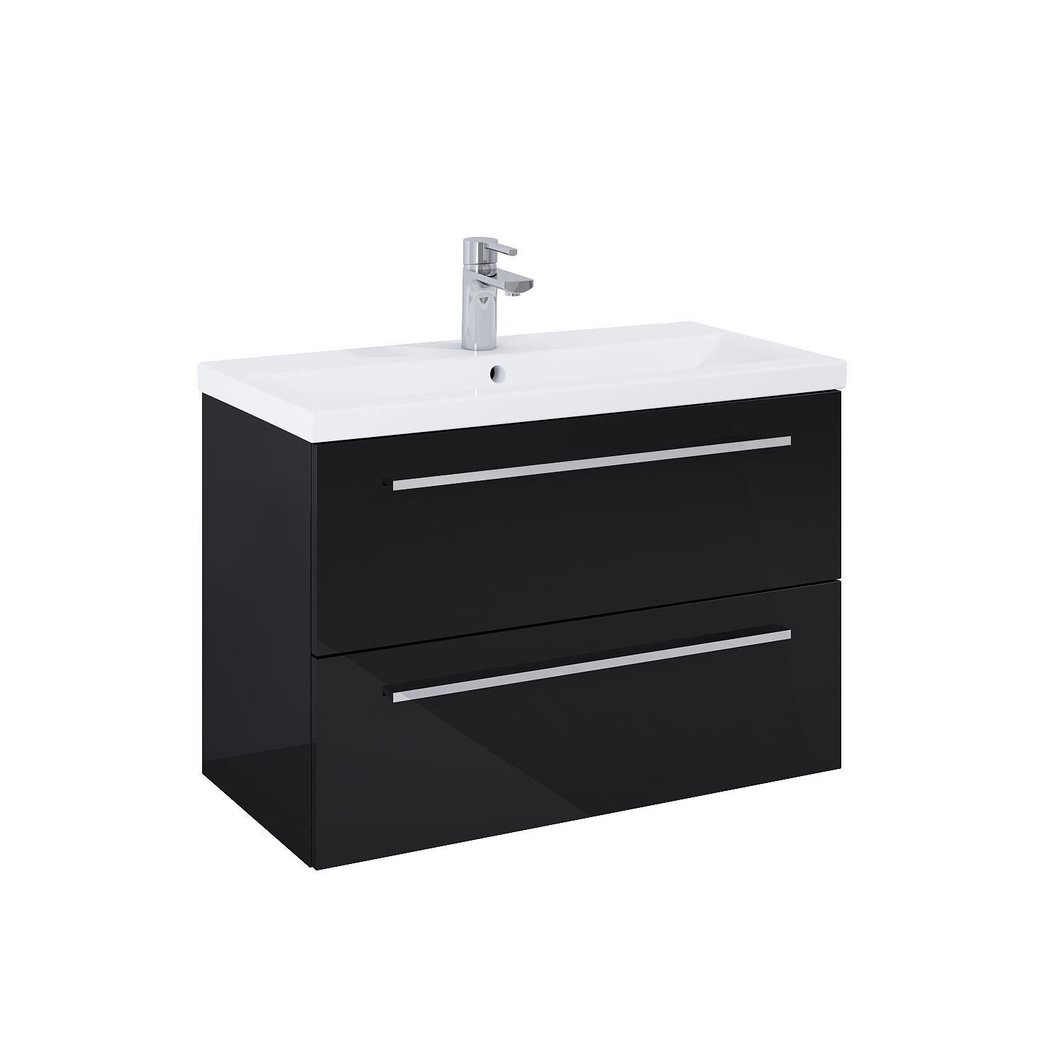 Szafka podumywalkowa Kwadro Plus 80 cm w kolorze black. Szafka zaopatrzona w 2 szuflady z funkcją cichego samodomyku oraz z pełnym wysuwem. Wykonana jest z materiałów wysokiej jakości, odznacza się niebywałą solidnością. Front i korpus mebla składa się z płyty laminowanej. Metalowe chromowane uchwyty są wygodne w użyciu. Górna szuflada wyposażona w praktyczny oragnizer. Istnieje możliwość dokupienia uchwytów w kolorze białym, czarnym i złotym.