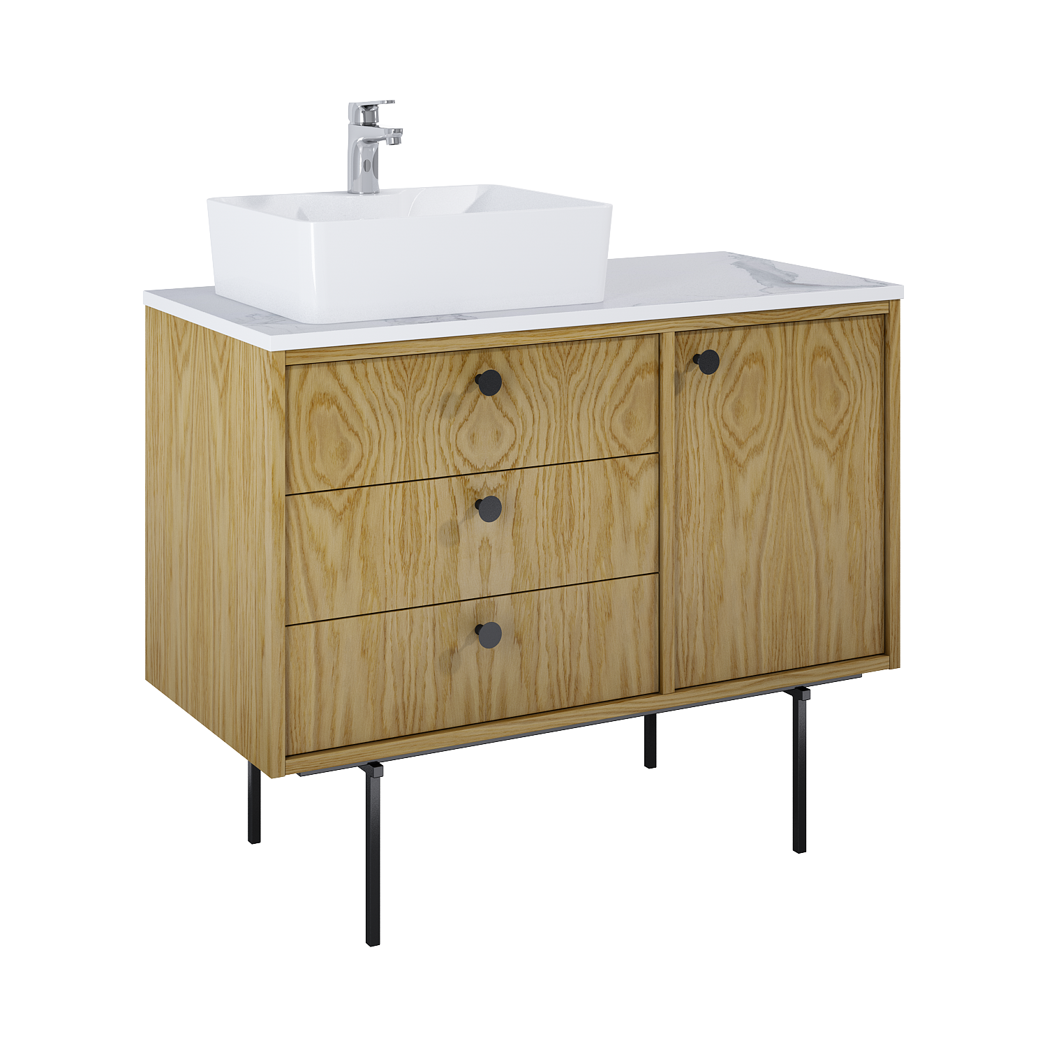 Szafka Legacy to tradycyjny mebel wykonany z materiałów wysokiej jakości, front i korpus z płyty MDF pokrytej wyselekcjonowanym fornirem. W pojemnych szufladach zastosowano funkcję pełnego wysuwu i cichego samodomyku, drzwiczki wyposażone w zawiasy z cichym domykiem. Szafka posiada szklaną półkę z regulowaną wysokością. Szafkę uzupełniają punktowe uchwyty w trzech kolorach: gold, black i antique silver oraz klasyczne, proste nóżki wykonane z metalu. Uchwyty oraz nóżki do nabycia osobno. Szafka przeznaczona do kompletowania z blatem, który należy nabyć osobno.
