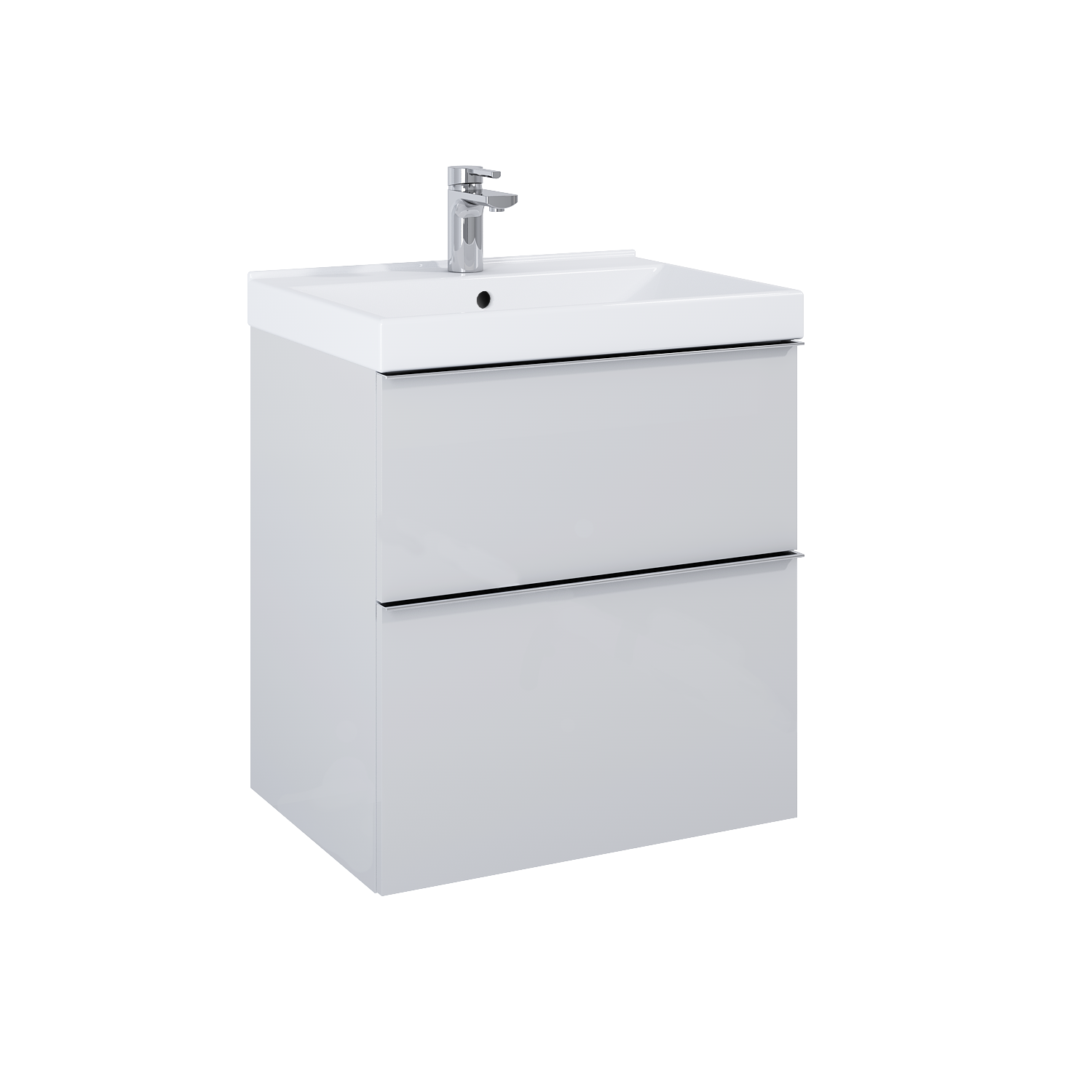 Szafka podumywalkowa Look 60 cm stone matt, 2 szuflady z funkcją cichego samodomyku oraz z pełnym wysuwem. Pierwsza szuflada zaopatrzona w organizer. Szafka wykonana z materiałów wysokiej jakości, front i korpus z płyty laminowanej, uchwyty metalowe w kolorze chrom połysk. Szafka przygotowana do łączenia z umywalką lub blatem. Istnieje możliwość dokupienia uchwytów w kolorze czarnym i złotym.