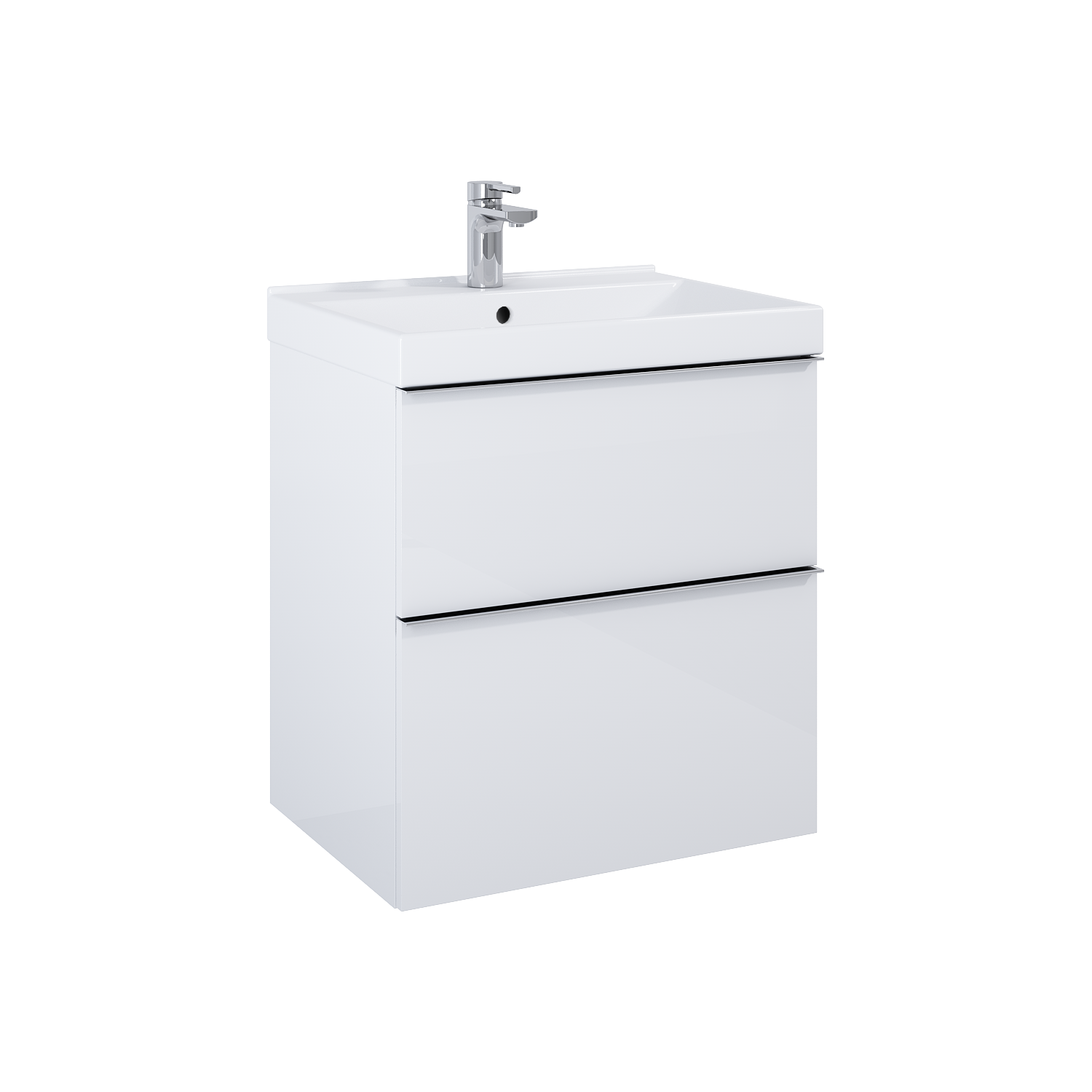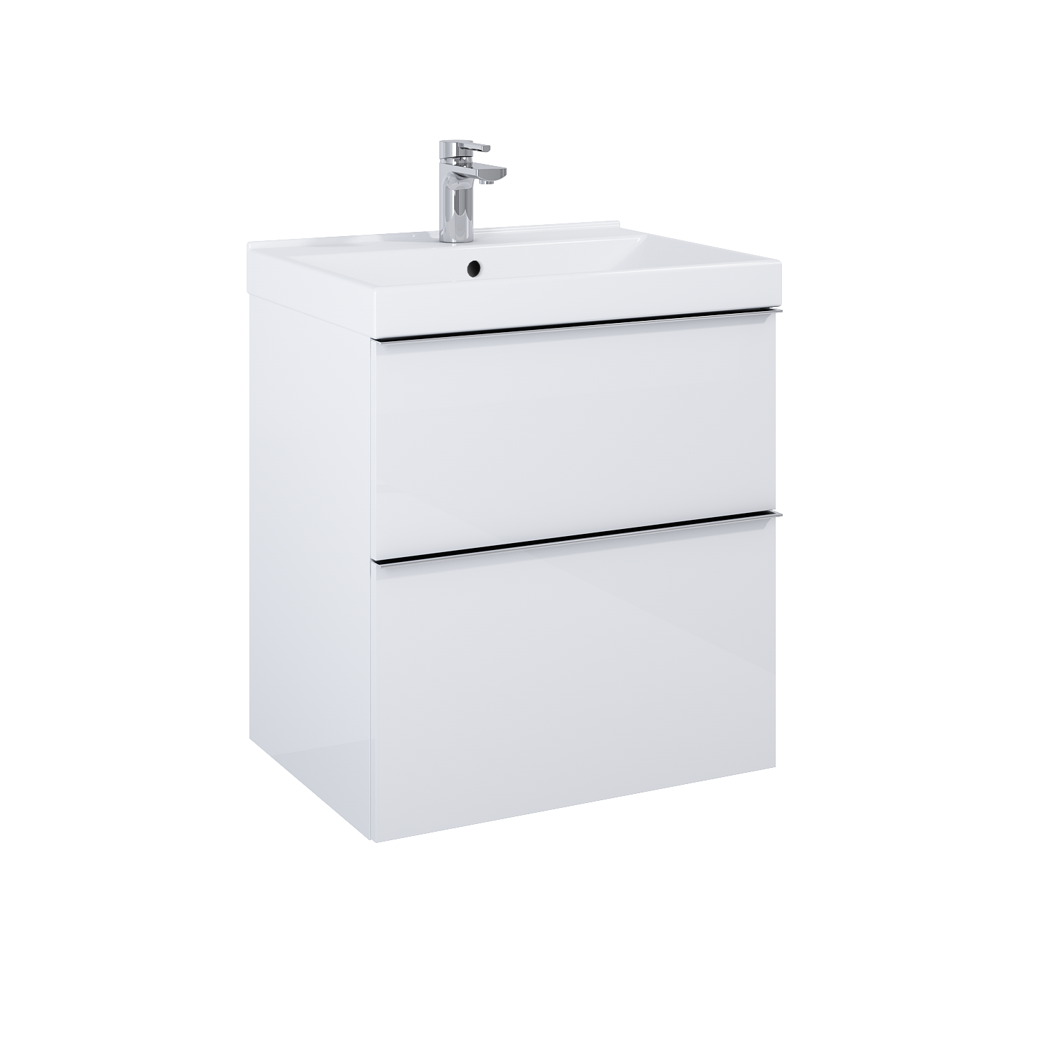 Szafka podumywalkowa Look 60 cm, 2 szuflady z funkcją cichego samodomyku oraz z pełnym wysuwem. Pierwsza szuflada zaopatrzona w organizer. Szafka wykonana z materiałów wysokiej jakości, front i korpus z płyty laminowanej, lakierowanej na wysoki połysk w kolorze white. Szafka przygotowana do łączenia z umywalką lub blatem. Szafka jest sprzedawana bez uchwytów. Uchwyty do nabycia osobno – dostępne możliwości: uchwyt gałka radełkowana w kolorach: stal/złoty/czarny, uchwyt dwupunktowy w kolorach: chrom/złoty/czarny lub uchwyt krawędziowy w kolorach: biały/szary/antracyt/czarny mat oraz chrom/złoty/różowe złoto połysk.