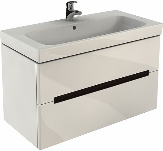 Kolor: biały połysk. 2 szuflady z mechanizmem cichego domykania. Do kompletowania z umywalką 100 cm, nr L31900. Możliwość kompletowania z dwoma lub czterema nożkami (cena za 2 szt.) aluminium anodowane, regulacja 215–225 mm. W komplecie: wnętrze uchwytu – chrom, zestaw montażowy, instrukcja montaż.