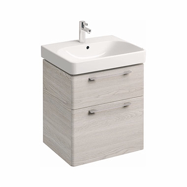 2 szuflady z mechanizmem cichego domykania, chromowane uchwyty. Do kompletowania z umywalką 60 cm 500.229.01.1. Meble z płyty wilgocioodpornej. W komplecie: uchwyty, zestaw montażowy, instrukcja montażu.