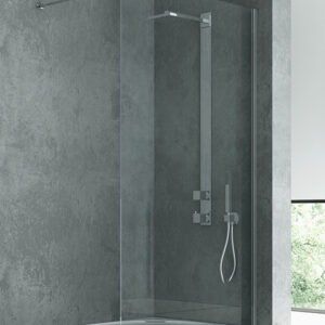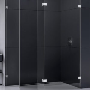 Kabina typu walk-in, z wieszakiem relingowym. Bezpieczne hartowane szkło 6mm lub 8 mm, pokryte powłoką ochronną Active Shield.