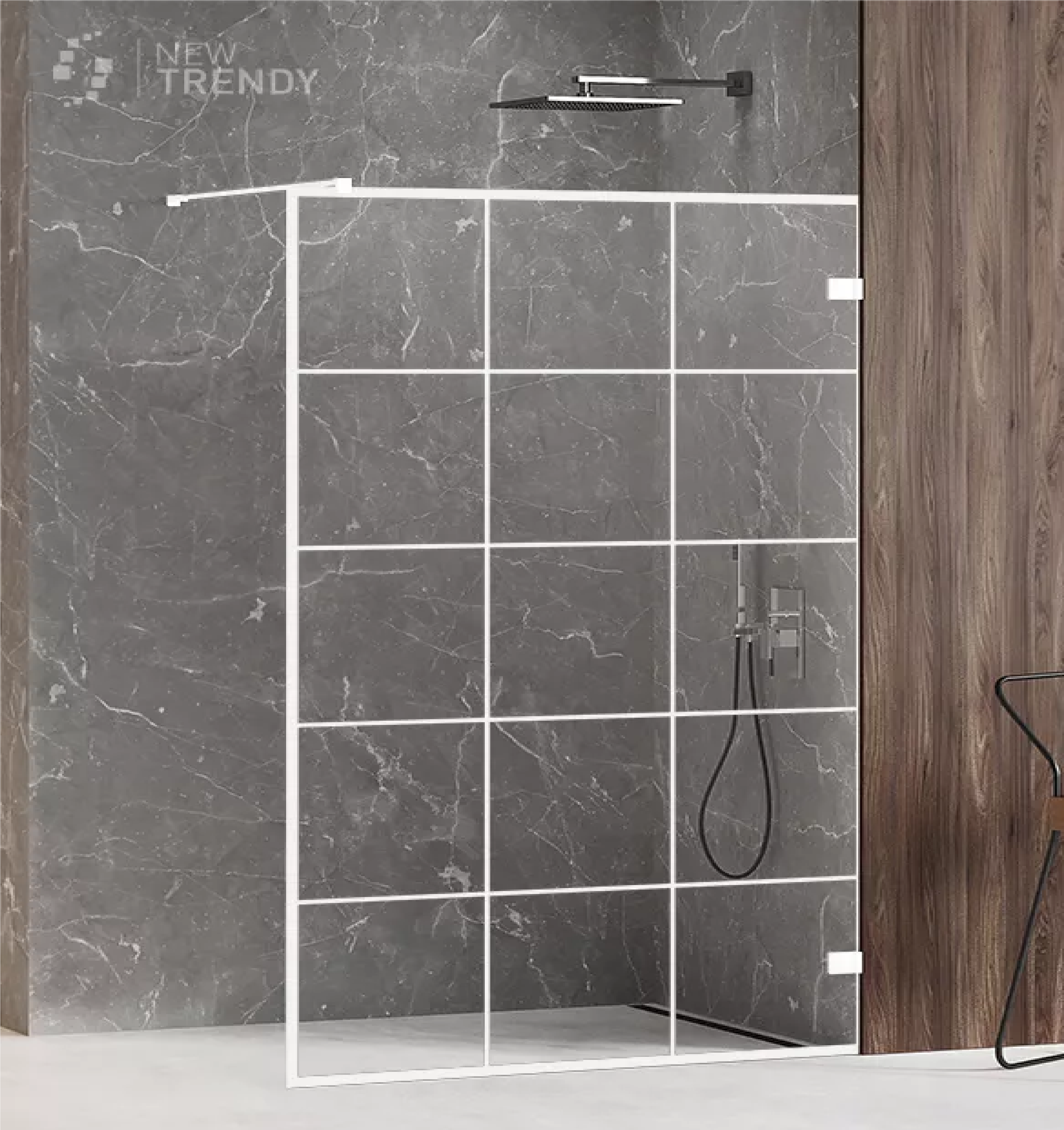 Kabina typu walk-in, bezpieczne hartowane szkło 6mm pokryte powłoką ochronną Active Shield