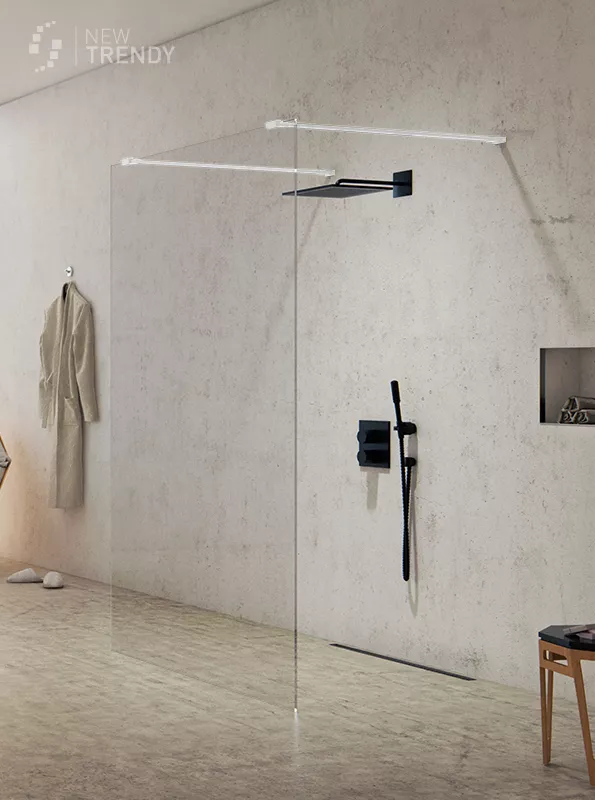 Kabina typu walk-in, bezpieczne hartowane szkło 8 mm pokryte powłoką ochronną Active Shield.