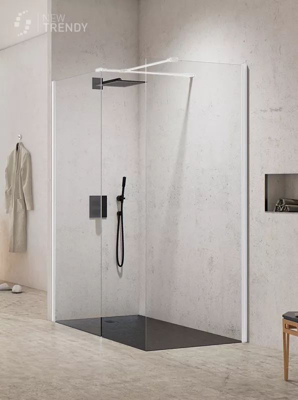 Kabina typu walk-in, bezpieczne hartowane szkło 8 mm pokryte powłoką ochronną Active Shield.