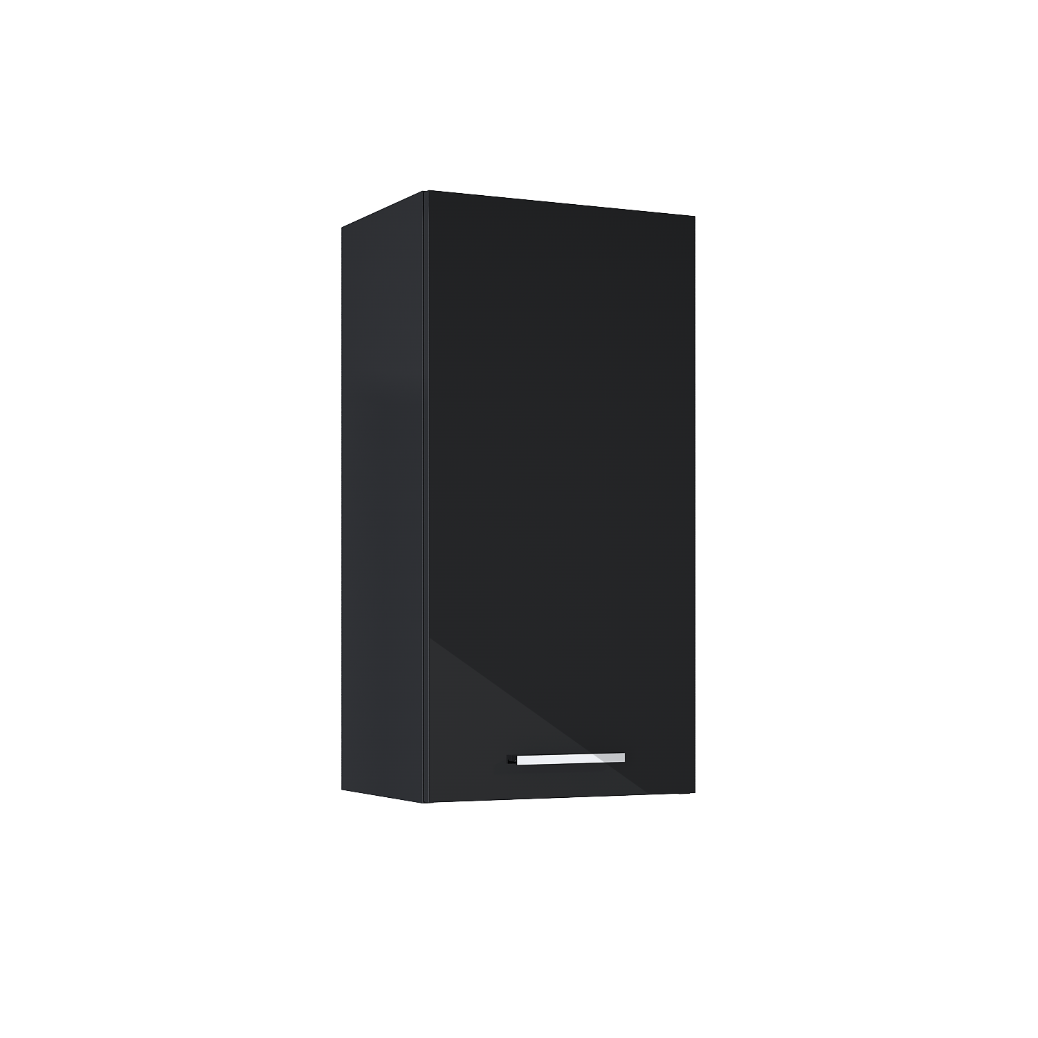 Szafka wiszaca Kwadro Plus 40 cm w kolorze black. Szafka zaopatrzona w 2 półki. Wykonana jest z materiałów wysokiej jakości, odznacza się niebywałą solidnością. Front i korpus szafki składa się z płyty laminowanej, lakierowanej na wysoki połysk. Metalowe chromowane uchwyty są wygodne w użyciu. Drzwi wyposażone w system cichego domyku. Istnieje możliwość dokupienia uchwytów w kolorze białym, czarnym i złotym.