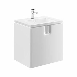 Zestaw meblowy 60 cm składający się z: Umywalka prostokątna z niskim rantem 60 x 50,2 cm + Szafka z 1 drzwiami 60 x 63,5 x 50,2 cm, Kolor: biały połysk. Drzwi z mechanizmem cichego domykania. Możliwość montażu drzwi z otwieraniem na lewą lub prawą stronę. Uchwyt chromowany. W komplecie: instrukcja montażu, zestaw montażowy.