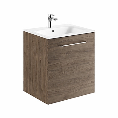 Zestaw meblowy 60 cm składający się z: Umywalka prostokątna z niskim rantem 60 x 50,2 cm + Szafka z 1 drzwiami 60 x 63,5 x 50,2 cm, Kolor: orzech włoski. Drzwi z mechanizmem cichego domykania. Możliwość montażu drzwi z otwieraniem na lewą lub prawą stronę. Uchwyt chromowany. W komplecie: instrukcja montażu, zestaw montażowy.